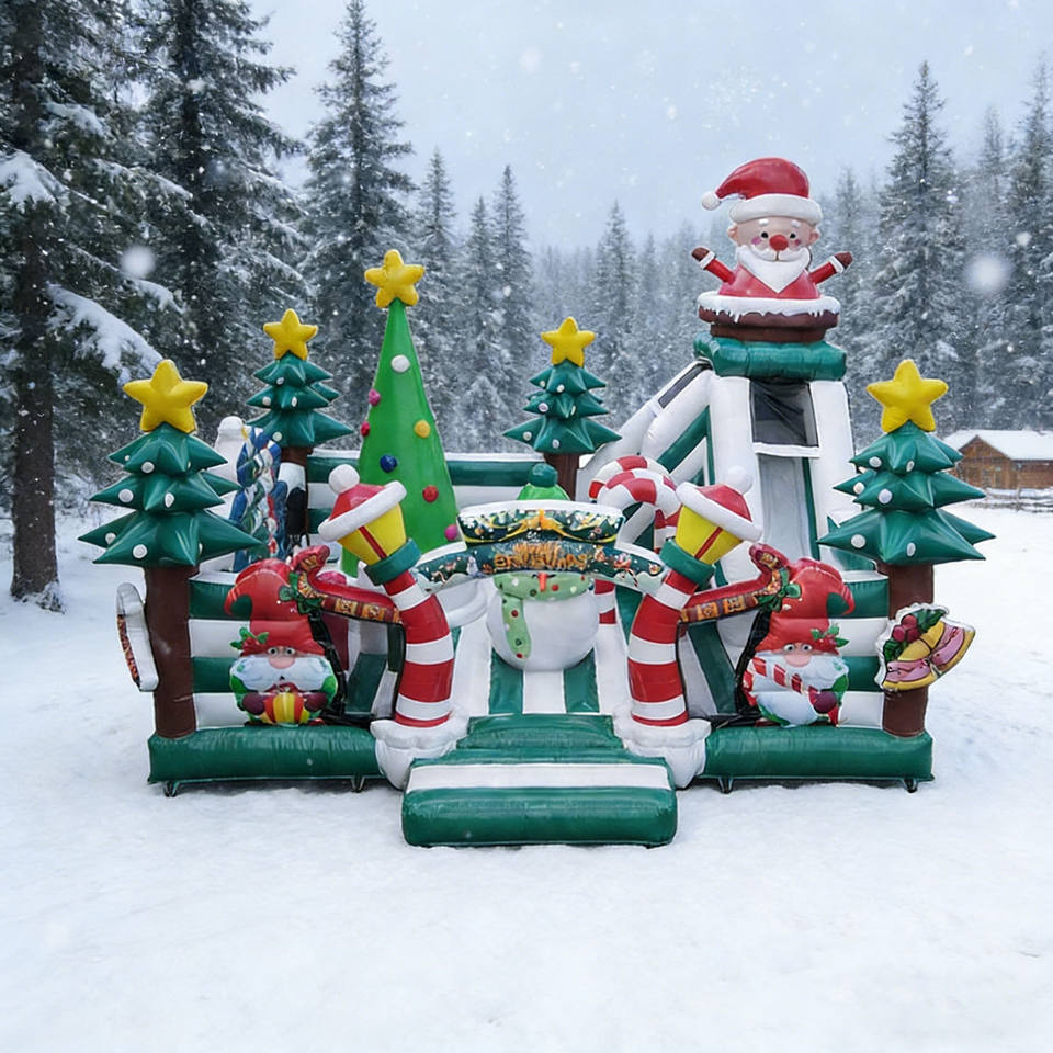 Château gonflable commercial Père Noël et Bonhomme de neige en PVC avec garantie de 3 ans, capacité supérieure à 500 kg pour enfants