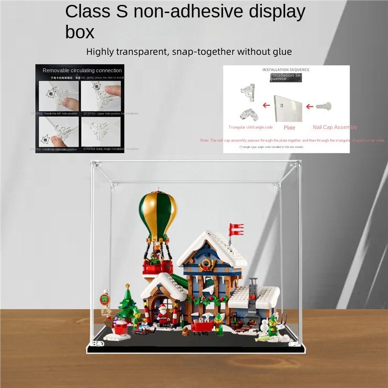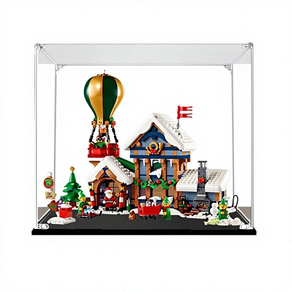 Boîte de présentation de bijoux rectangulaire en acrylique Santa's Post Office avec design anti-poussière pour le rangement moderne à domicile