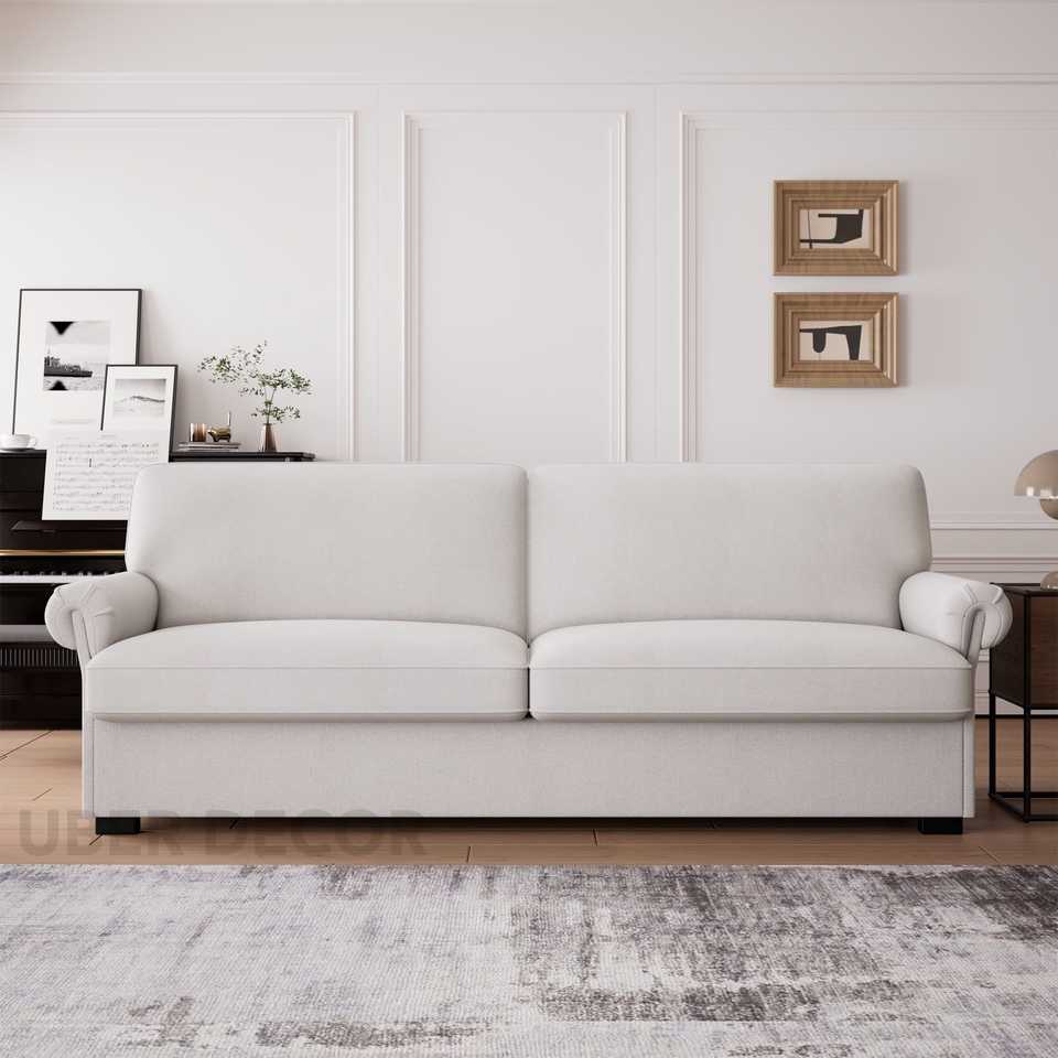 Santorini 71 Canapé trois places en lin avec coussin amovible et accoudoir à volutes pour le salon