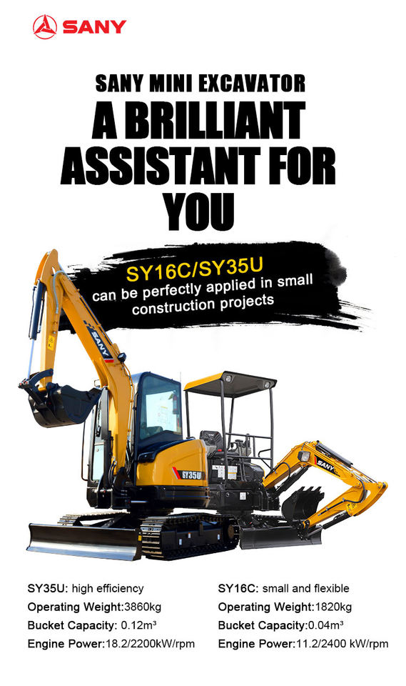 Mini-Pelle Compacte Sany SY26U 2.5 Tonnes pour Petits Travaux de Cultivation, Construction de Jardins et Tâches de Creusement Domestiques