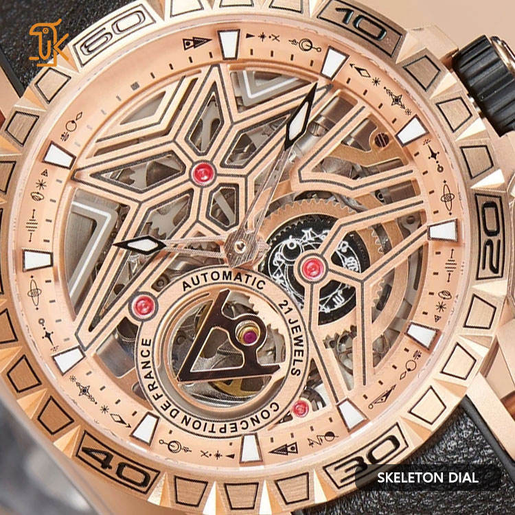 Montres Sanyin personnalisées avec logo, squelette en acier inoxydable gravé, bracelet en cuir haut de gamme, automatiques, OEM