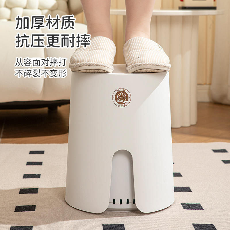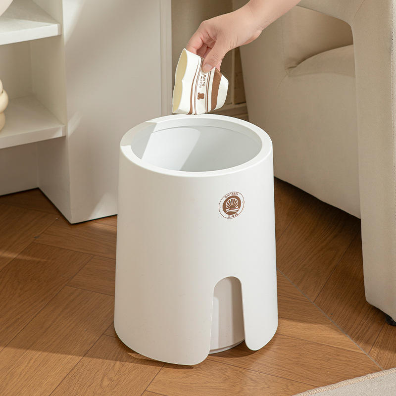 Poubelle cylindrique Sanzei avec couvercle, blanche, pour intérieur, bouton poussoir, grande capacité, étanche, anti-odeurs