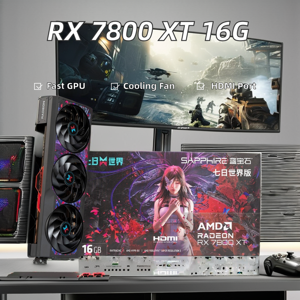Carte graphique de jeu pour ordinateur de bureau Sapphire RADYON RX 7800 XT 16 Go Black Myth Wukong, ventilateur, PCI Express 4.0, DP/DVI-D, édition personnalisée, GDDR6