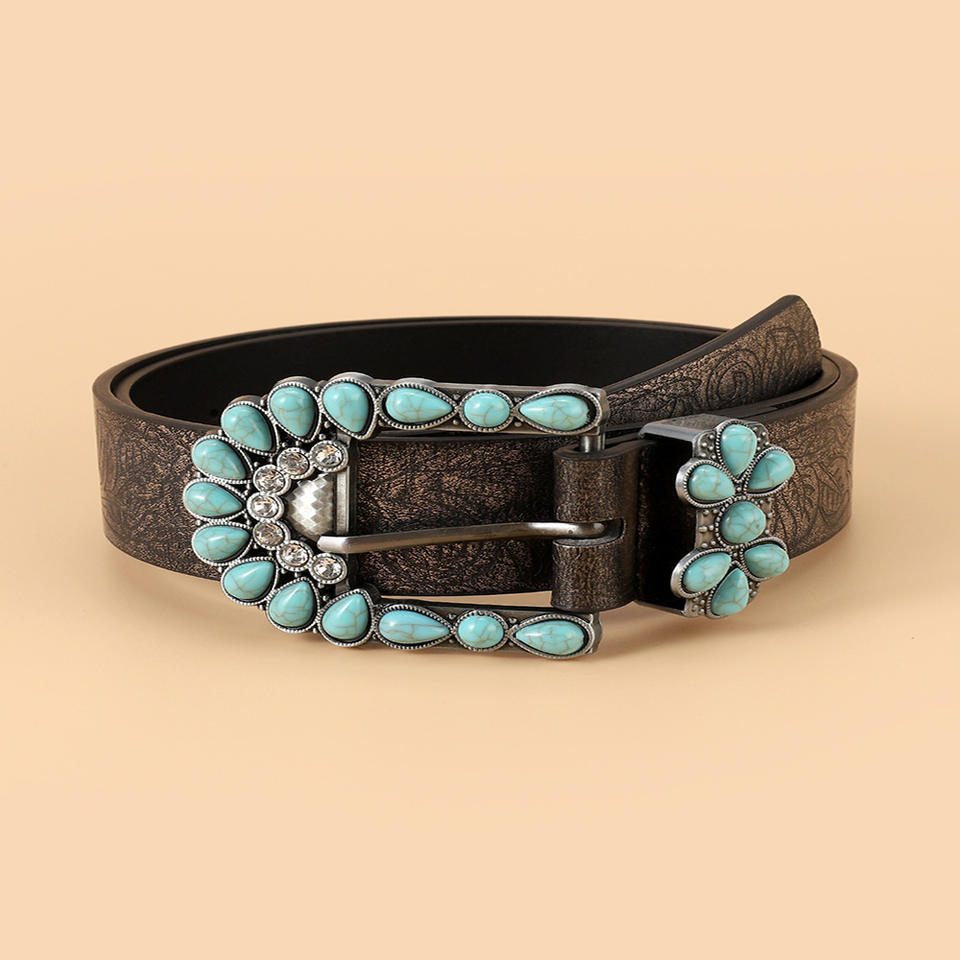 Women's Wide PU Belt with Silver Alloy Buckle Designer Ethnic Style Western Dress Belt From Pakistan