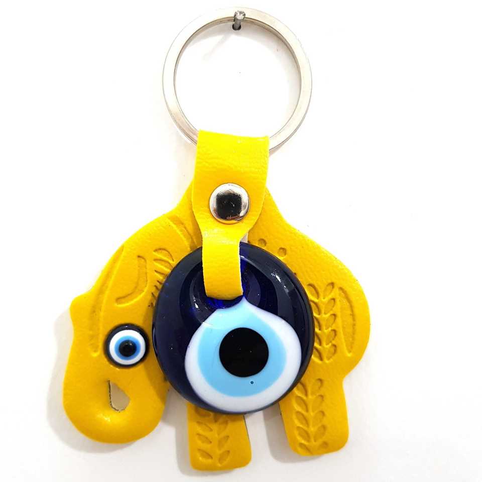 Sarı Anahtarlık Sarı Nazar Boncuklu Deri Fil Plastik Ve Metal Materia
