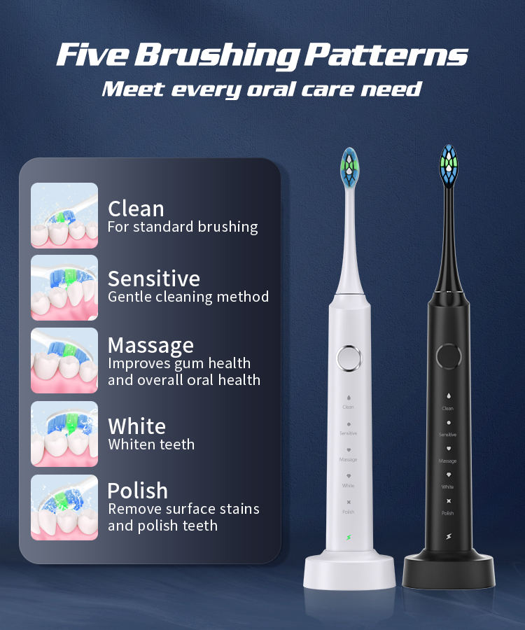 Dispositif:Imperméable, Profondément nettoyant, Intelligent, Blanchiment des dents, Réglage à plusieurs vitesses, Vibration haute fréquence