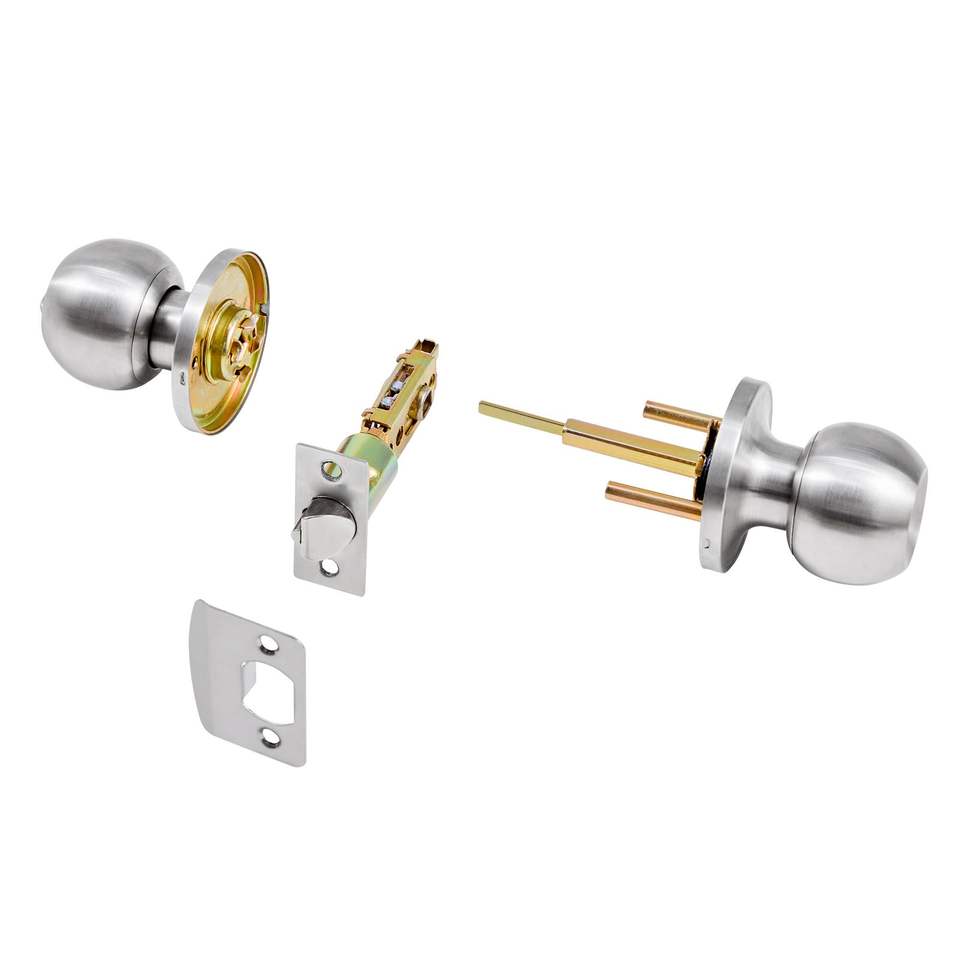 Poignée de porte à clé en nickel satiné avec bouton sphérique, tout en métal, pour extérieur et intérieur, avec verrouillage à bouton rotatif, poignées de porte entièrement métalliques