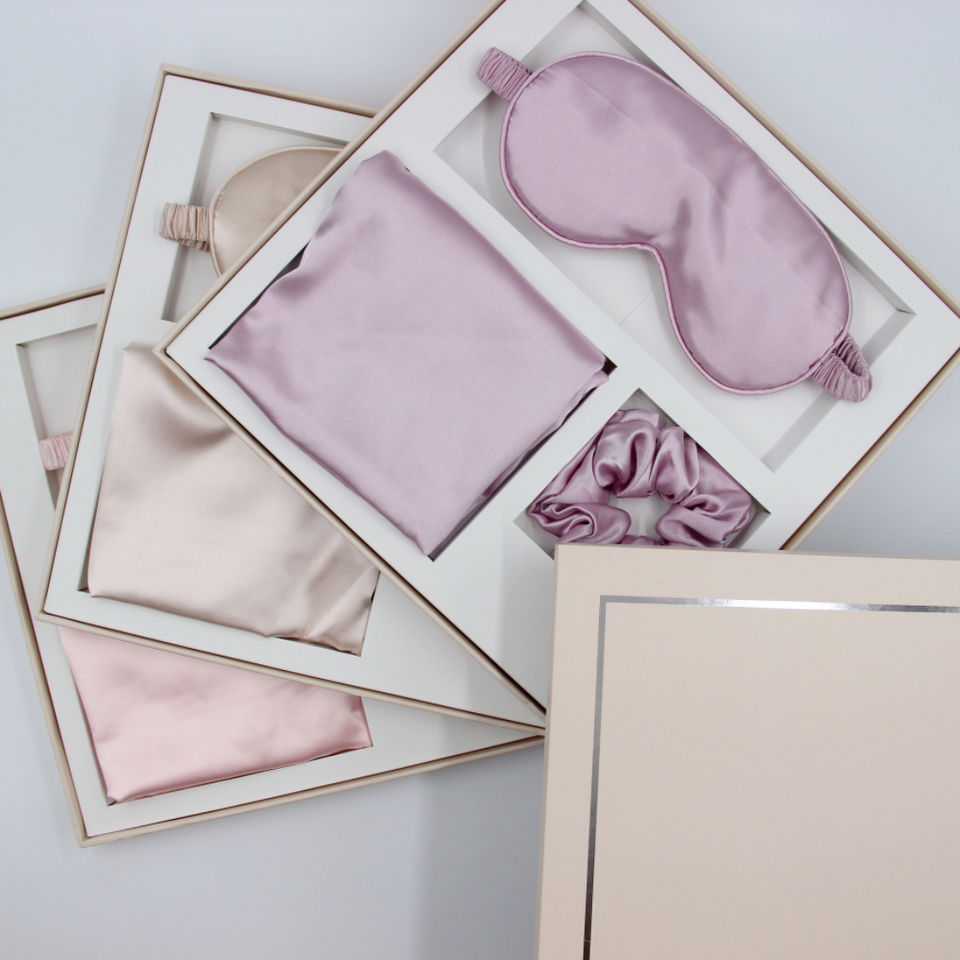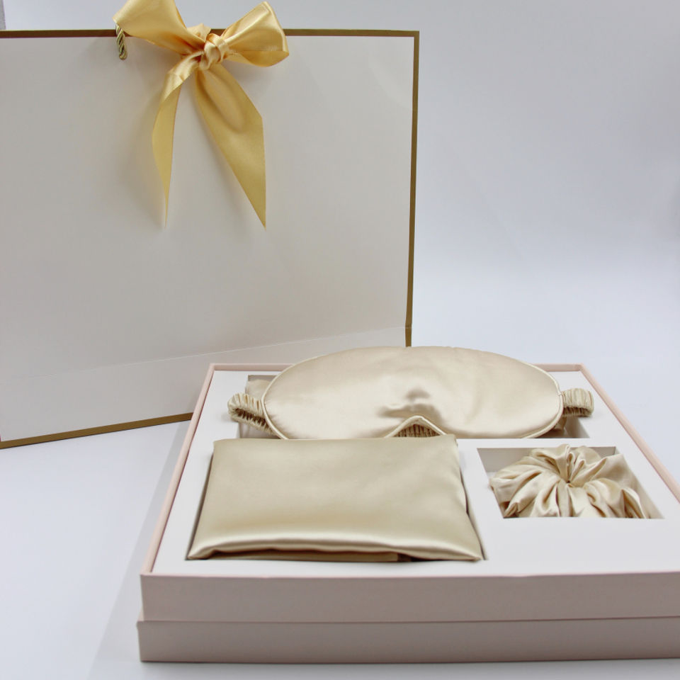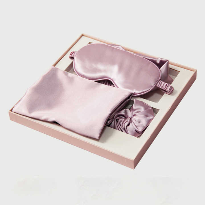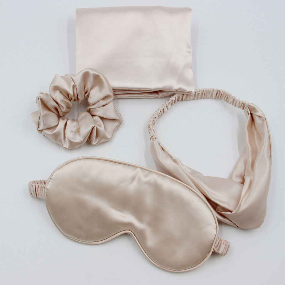 Satin Silk Sleep Mask 4 Pieces Sleep Set Satin Silk Pillowcase Hair Band Scrunchies Eye Mask Personal Travel Sleep Accessories