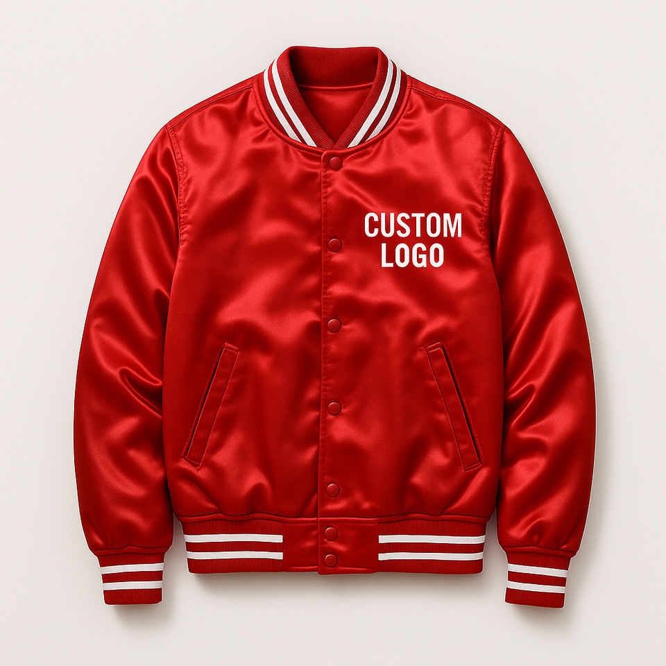 Veste universitaire en satin Vestes universitaires à logo personnalisé pour hommes Veste de baseball décontractée à manches longues à la mode Enduit brodé