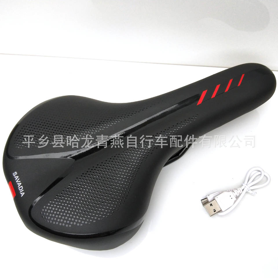 Selle de vélo Savadia avec éclairage LED arrière, confortable pour VTT, pour adultes unisexes, noir rouge/noir bleu/noir blanc