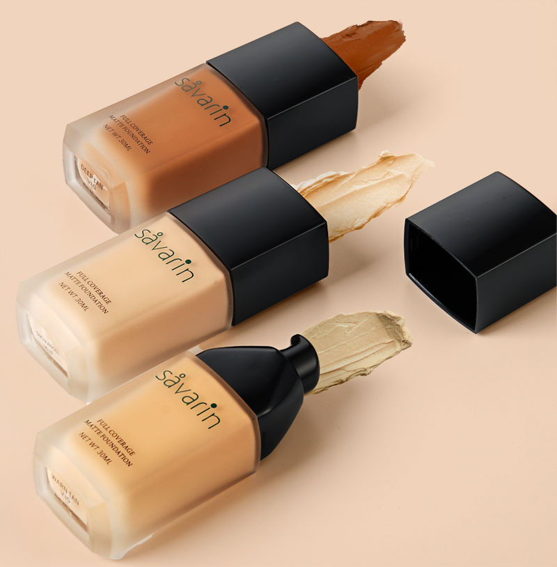 Fond de teint liquide mat imperméable à couverture totale Savarin pour peaux noires