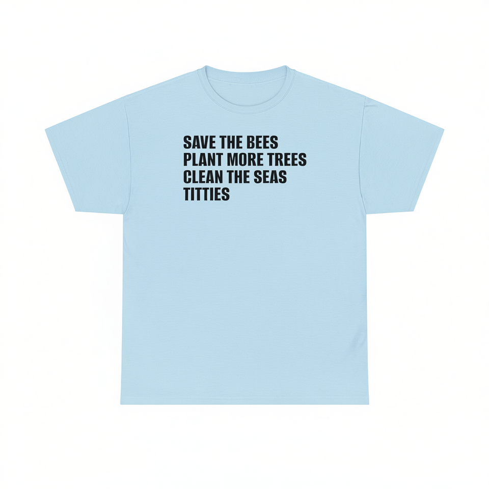 T-shirt « Sauvez les abeilles, plantez des arbres, nettoyez les mers» – Meme drôle, gênant et inapproprié