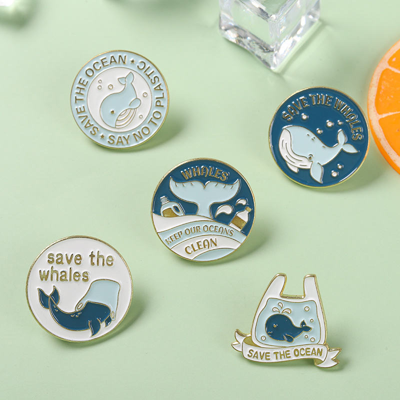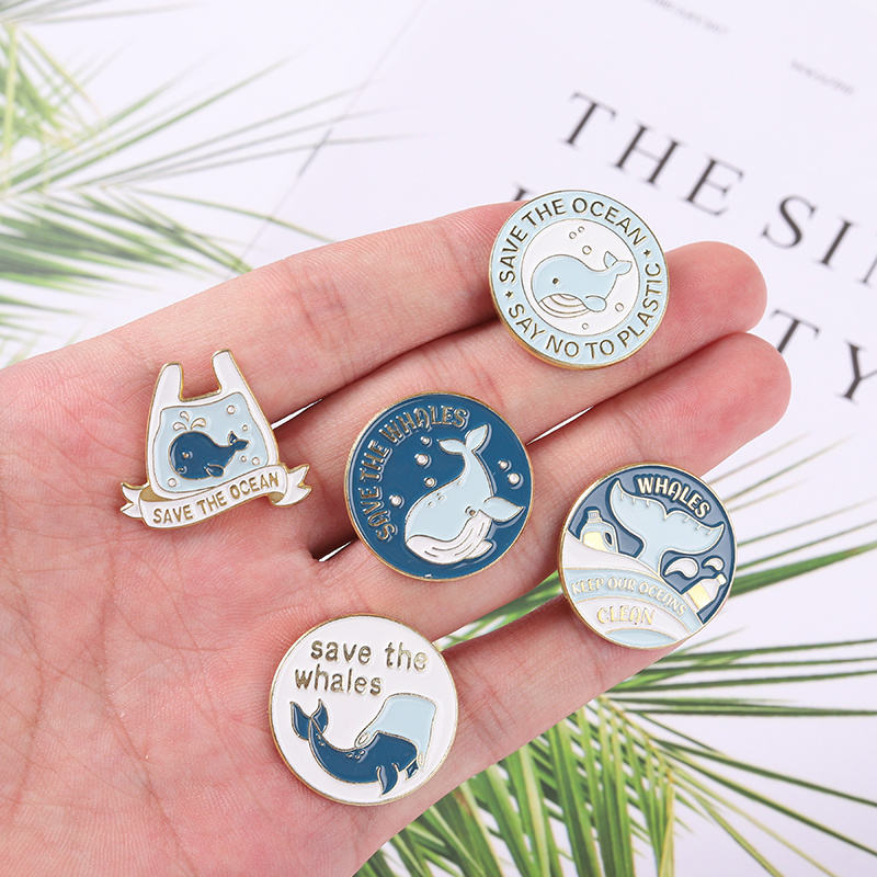 Sauvez l'océan épingles en émail arrêter la broche en plastique queue de baleine à bosse sur la mer épinglette Badges bijoux de baleine
