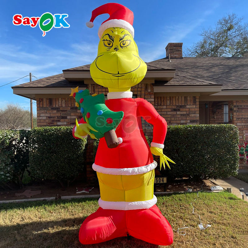 Sayok Factory Design Oxford Cloth Big Grinch Gonflables Décorations de Noël en plein air Grinch gonflable avec souffleur d'air
