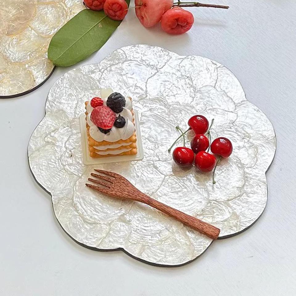 Scalloped mother of pearl placemat dining table scape accent beautiful design MOP inlaid placemats
