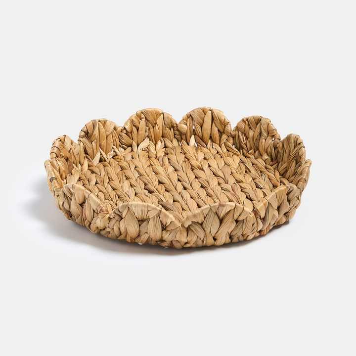 Scalloped water hyacinth tray dessert drink serving trays top sales natural fiber container
