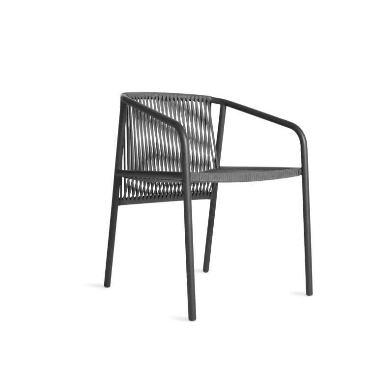 Chaise de salle à manger scandinave en aluminium avec cadre en corde tissée avec design nordique minimal et élégance naturelle pour les maisons modernes