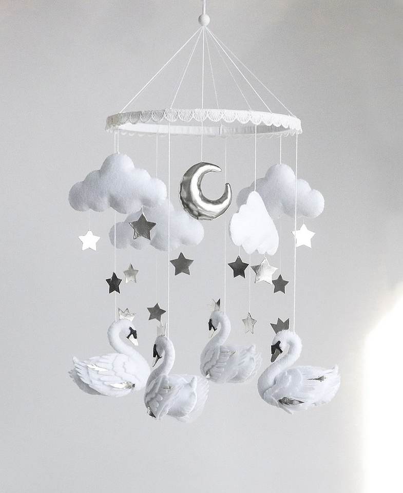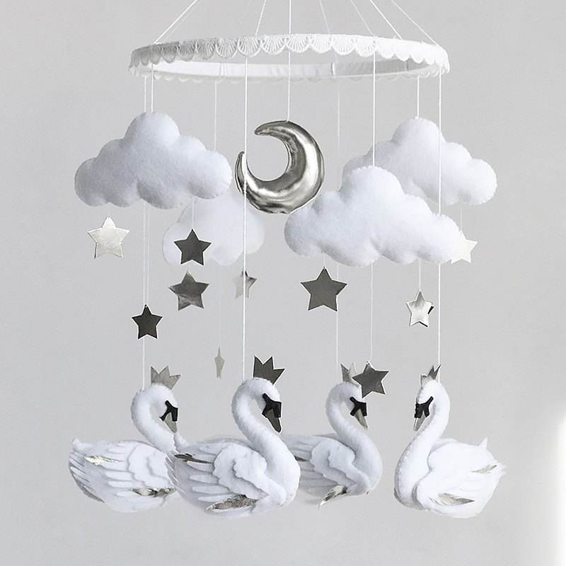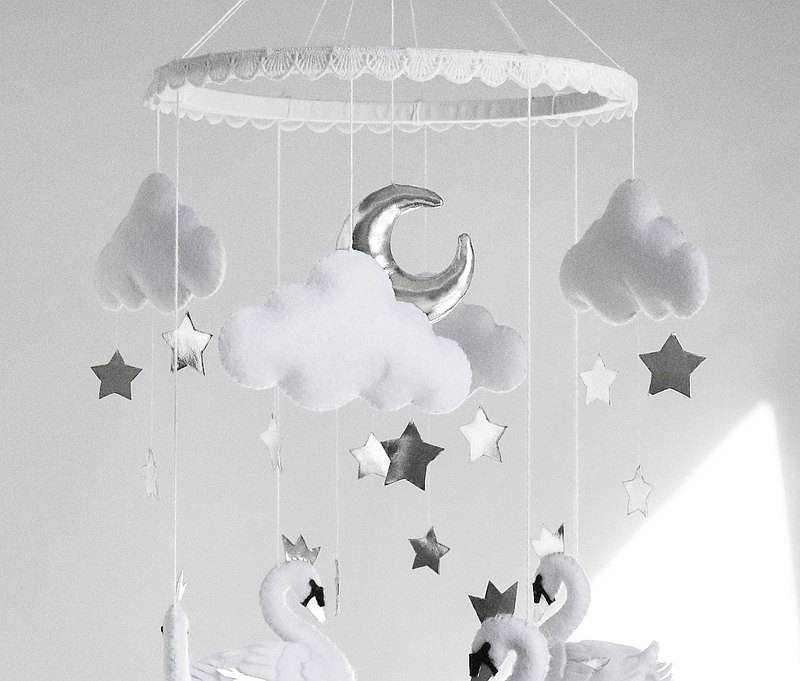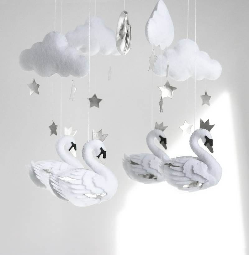 Fillettes, accessoires muraux scintillants faits à la main, accessoire pour fête prénatale de style scandinave, en feutre blanc, cygne, princesse, mobile, cadeau pour bébé