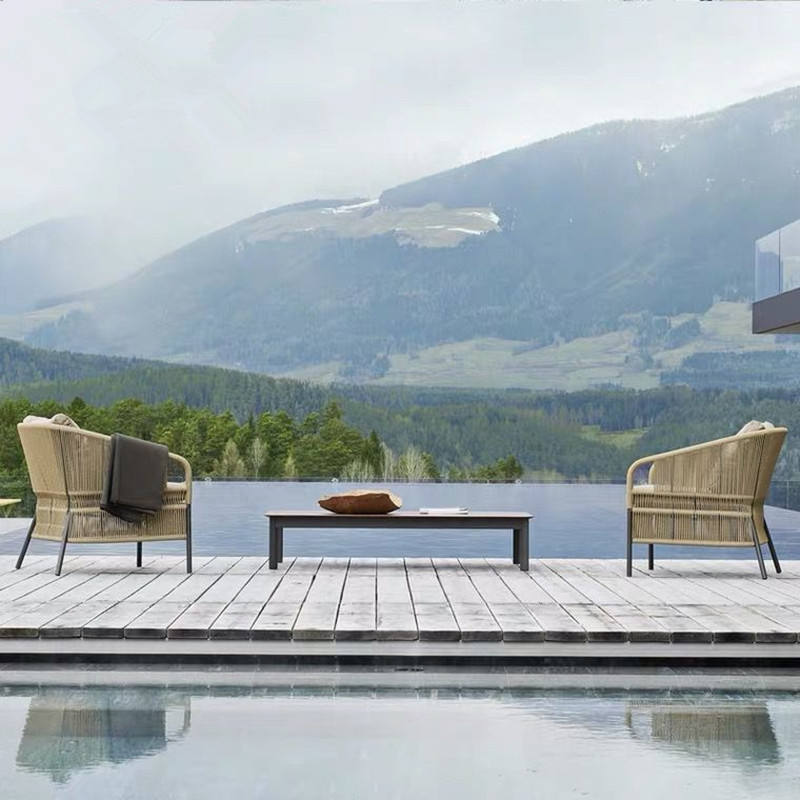 Ensemble table et chaises de patio extérieur scandinave en alliage d'aluminium, imperméable, pour villa, hôtel, balcon