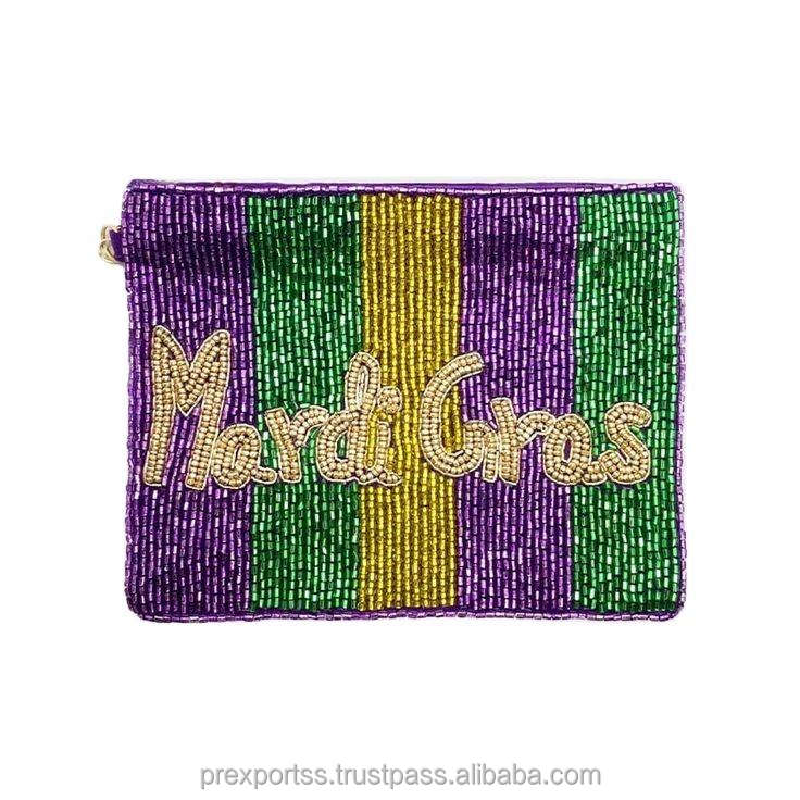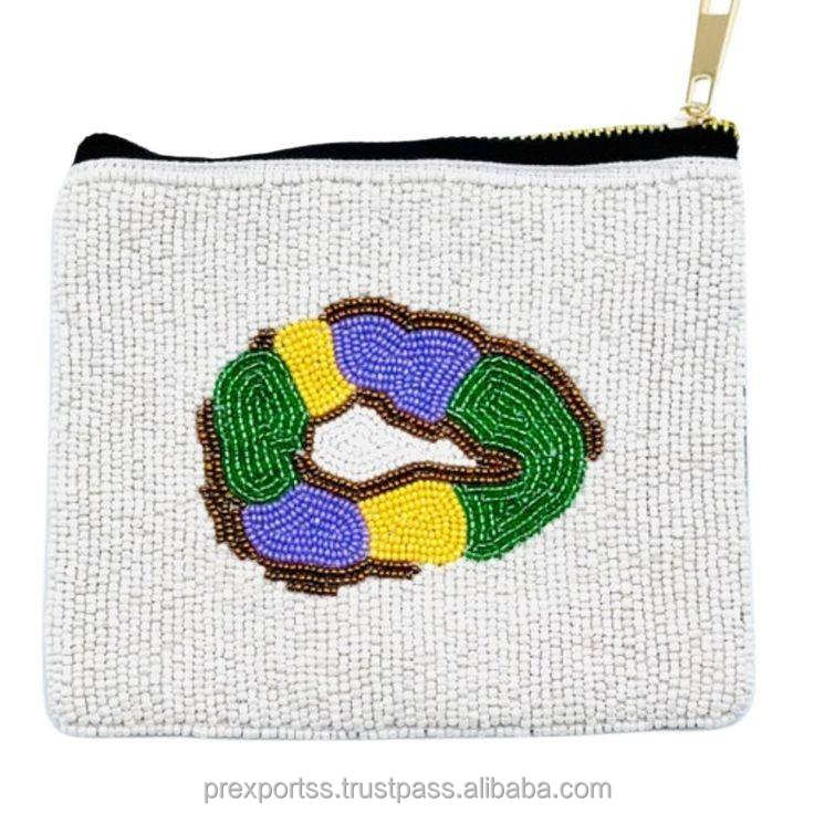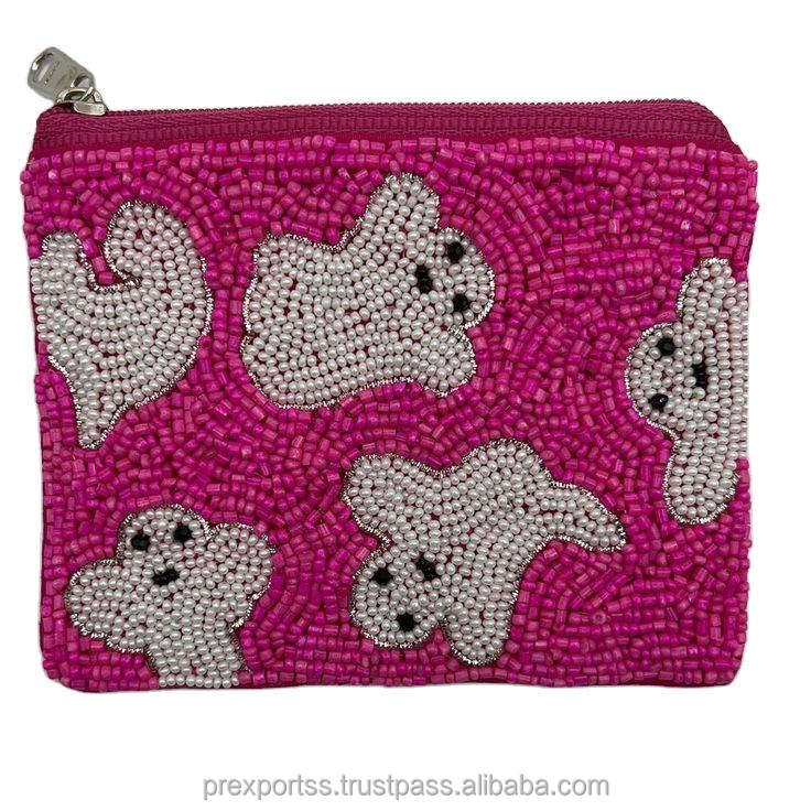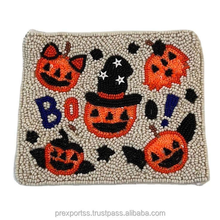 Scary Face Beaded Pouch Call Me Horror Theme Handmade Embroidery Zipper Bag Custom Clutch Large Capacity Halloween Valentine