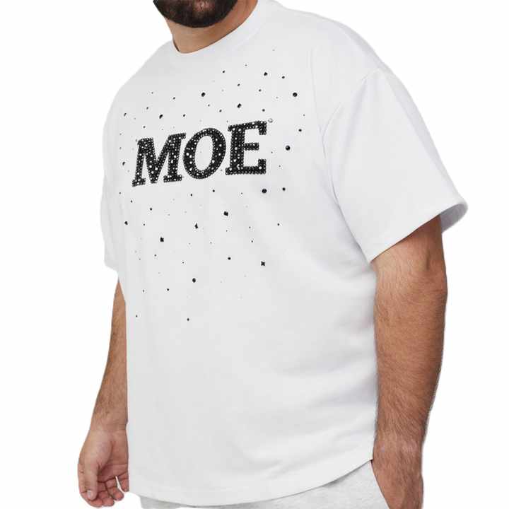 T-shirt pour homme en coton premium avec strass, motif graphique en cristal thermocollé minimaliste, style streetwear, personnalisable, OEM, vente en gros, fabricant d'usine
