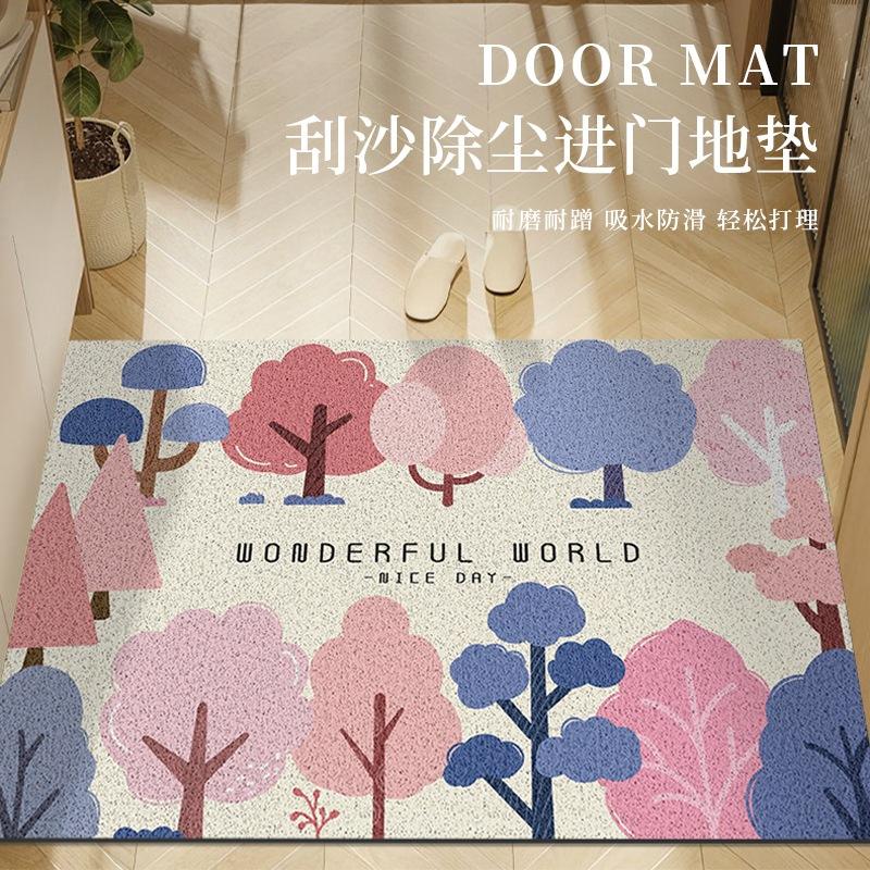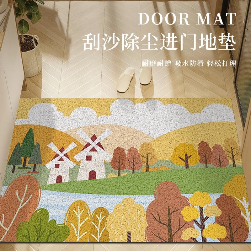 Paillasson rectangulaire d'intérieur moderne style ferme, motif vent d'automne sur les montagnes, en soie bouclée, pour entrée