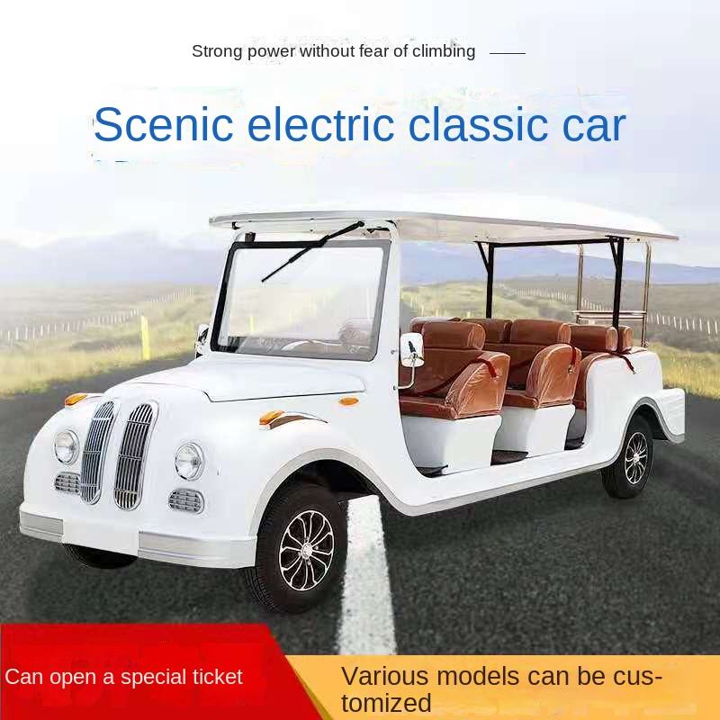 Scenic Manor Classic Electric Retro Ferry 4-Row 11-Seat Real Estate Sales Office RV Sightseeing 2 Stroke Golf Carts