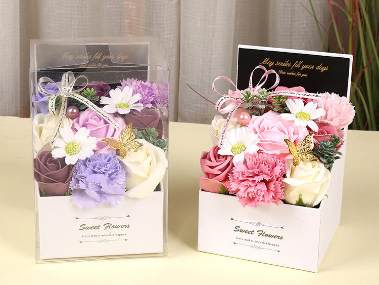 Nom du produit:Boîte cadeau bouquet de fleurs de savon 3D avec carte de vœux