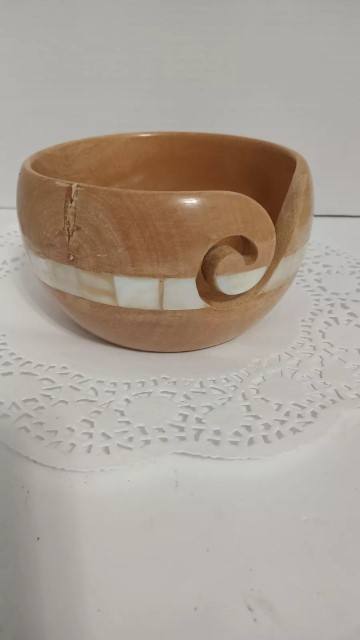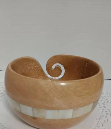 Scheepjes Yarn Bowl Mango Wood and Pearl One Yarn Bowl Handcrafted Wooden Knitting Bowl Crochet Yarn Holder Swirl Cutout Natural
