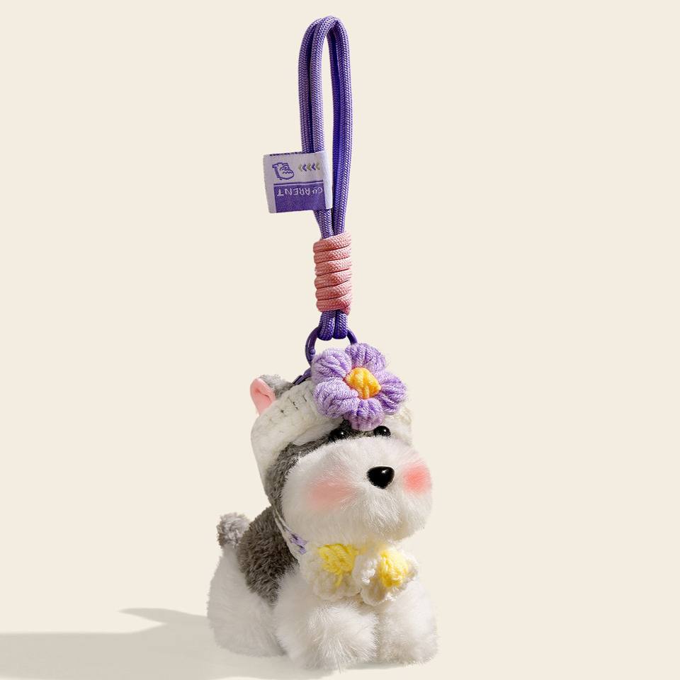 Porte-clés en peluche Schnauzer, jouet en peluche doux, adorable chiot en peluche, breloque de sac, porte-clés de voiture, cadeau d'anniversaire pour les amoureux des chiens