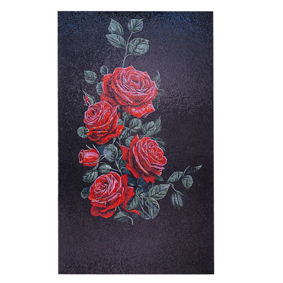 Mosaïque murale en marbre et verre, motif floral moderne fait main, personnalisable Schomex, épaisseur 10 mm, design graphique intérieur.