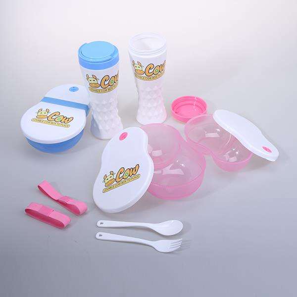 Description:Boîte à lunch scolaire avec compartiment à ustensiles pour bouteille