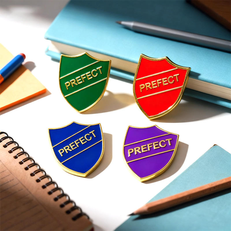 Badges de préfet d'école, épingles à revers en émail doux personnalisées, emblèmes d'autorité académique avec couleurs de maison, broches d'identification