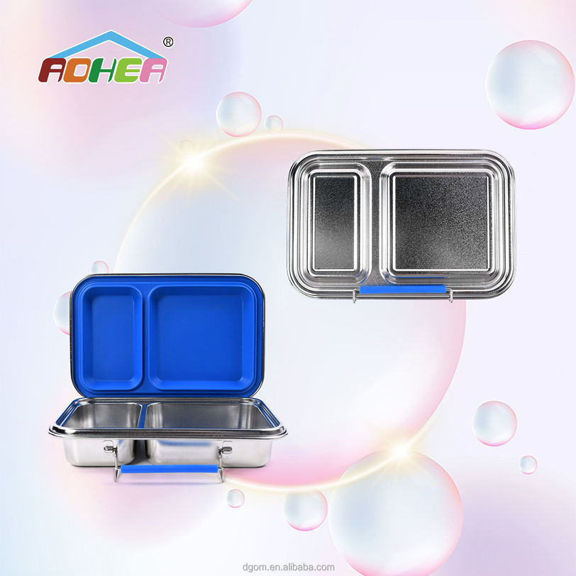 École En Acier Inoxydable Portable Bento Lunch 2 Compartiment Box Enfants Bento Lunchbox pour Enfants
