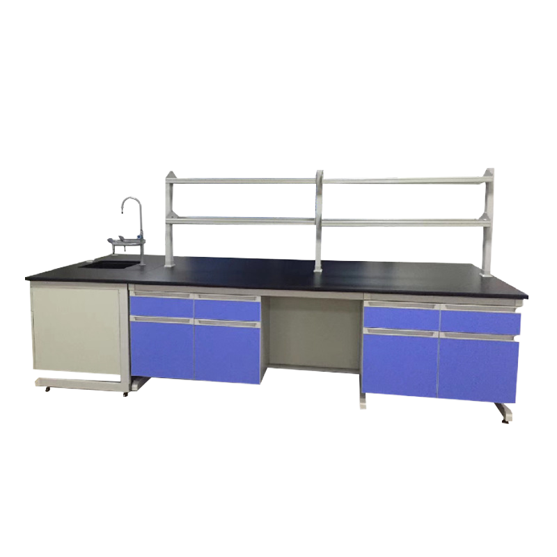 Table de travail de laboratoire de sciences, physique, chimie, table de travail de laboratoire en métal, îlot central de laboratoire