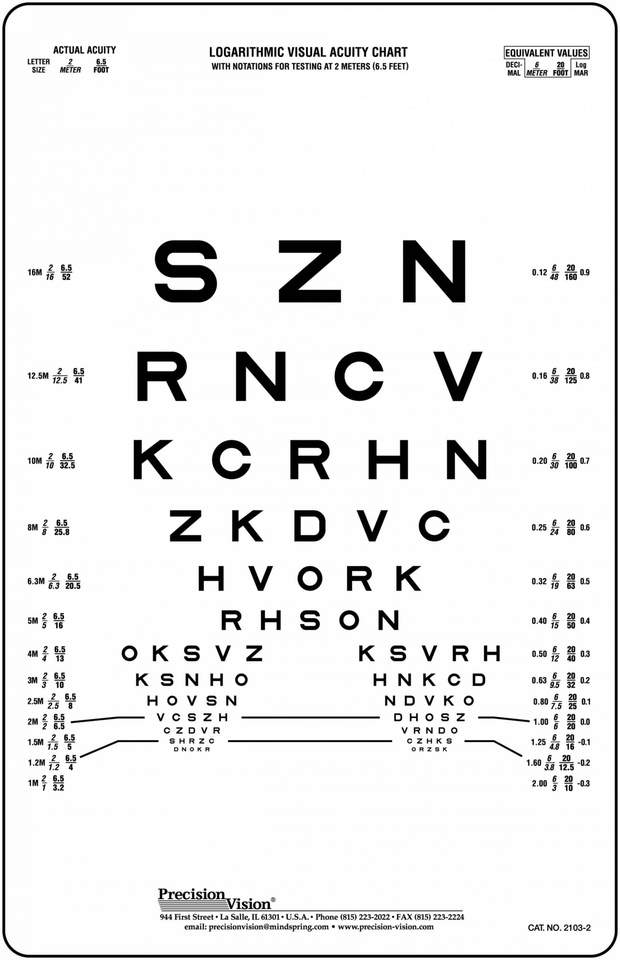 Graphique oculaire de l'acuité visuelle de Sloan logarithmique
