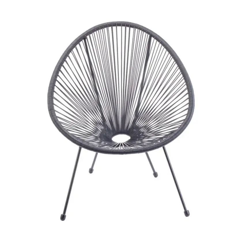 Fauteuil Scooby en gris et acier noir, chaise d'extérieur moderne avec structure métallique pour terrasse ou jardin