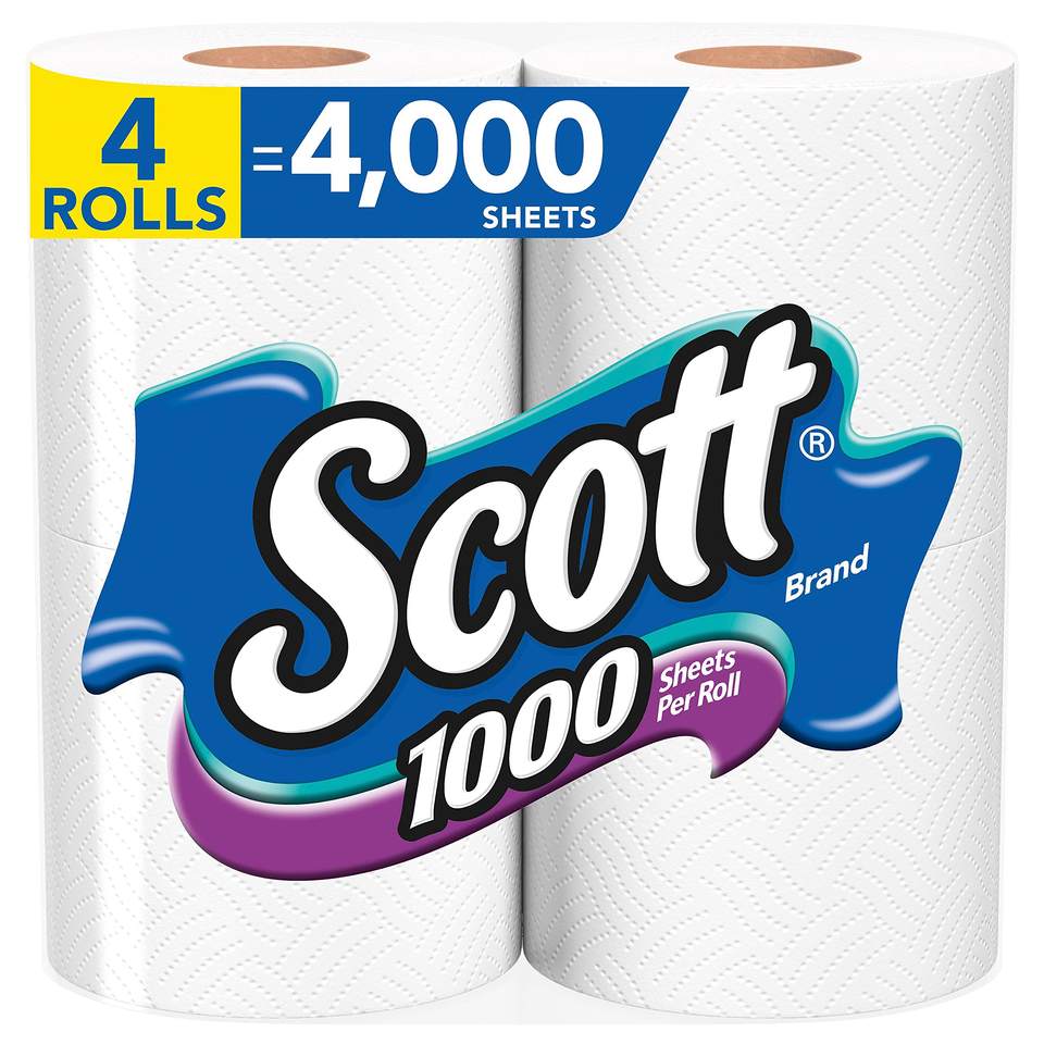 Papier toilette Scott 1 000 feuilles, 12 rouleaux, pâte de bois vierge