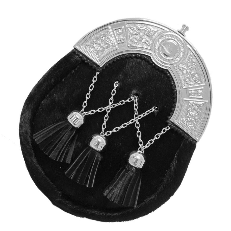 Sporran traditionnel écossais en fourrure de lapin avec broderie et glands élégants pour kilt formel