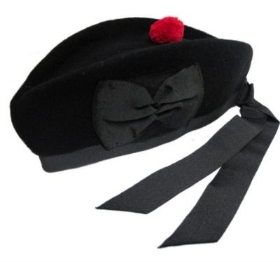 Scottish Highland Pipe Band Glengarry Hat Customizable Black Plain Wool for Any Size French Horn Included