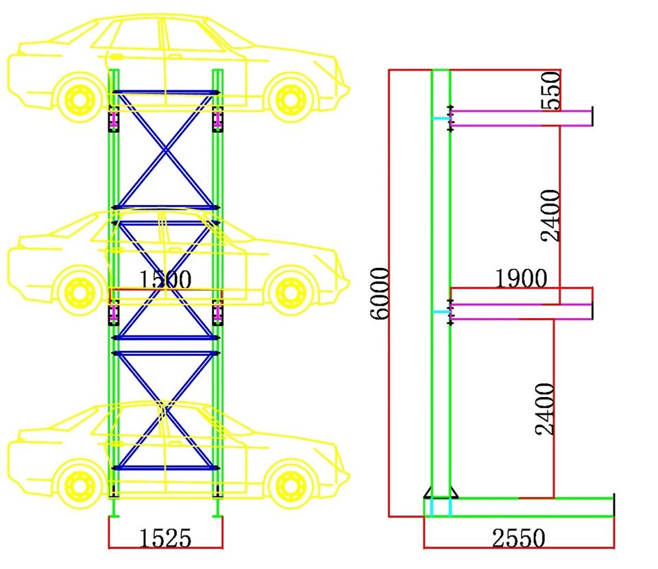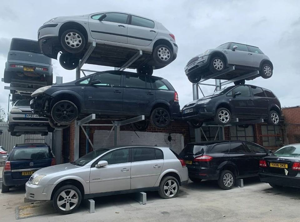 Rangement de supports en porte-à-faux pour voitures en déchets dans la cour