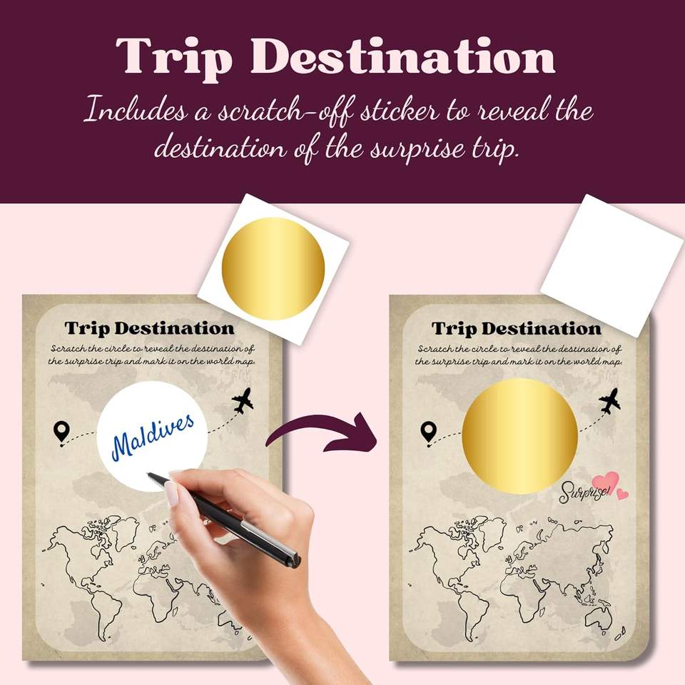 Passeport de voyage surprise à gratter, cadeau romantique personnalisable pour la Saint-Valentin et l'anniversaire des couples