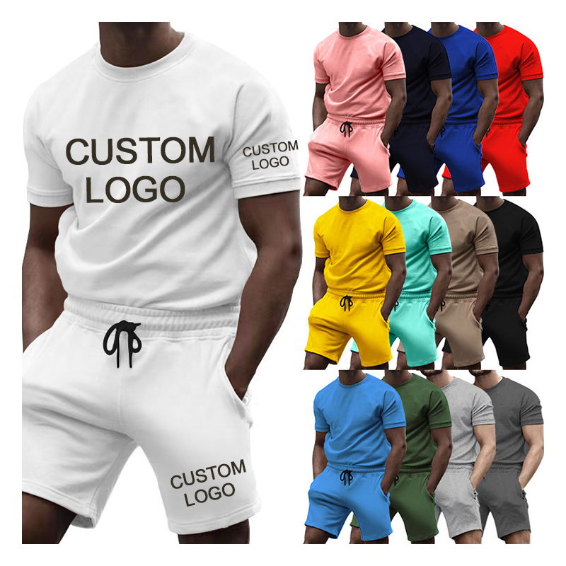 Survêtement sérigraphié avec broderie et logo personnalisé extra large grande taille survêtement 2 pièces extensible pour hommes de grande taille ensembles courts