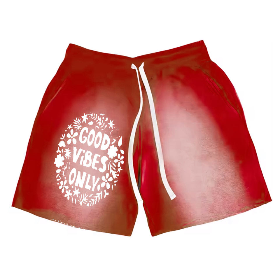 Short délavé à l'acide sérigraphié Short délavé à l'acide design personnalisé pour hommes Vêtements décontractés Taille adulte Short délavé à l'acide pour hommes