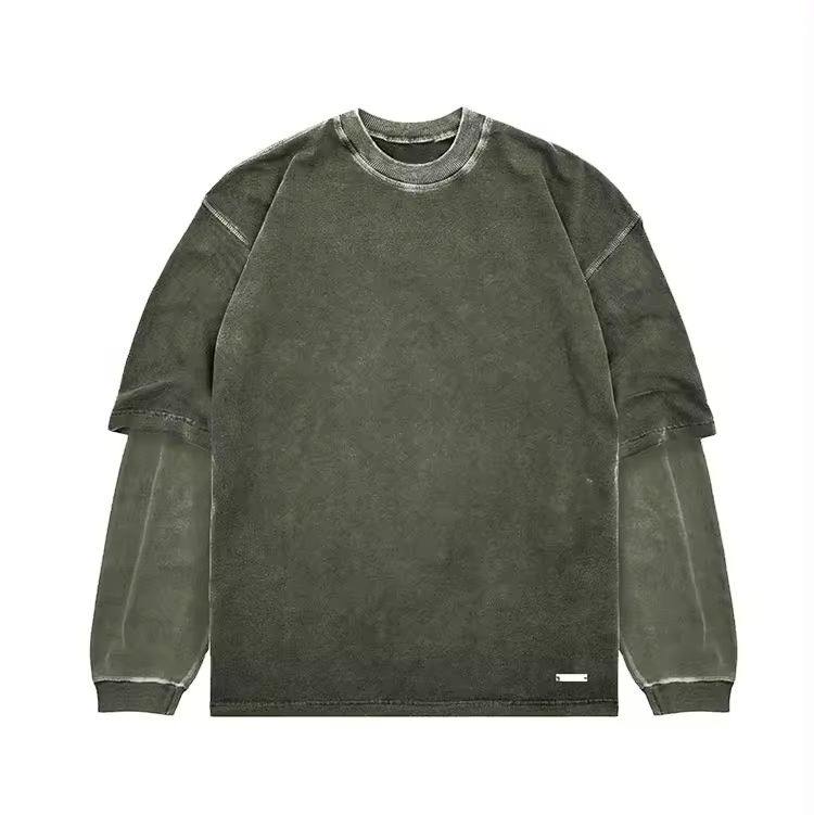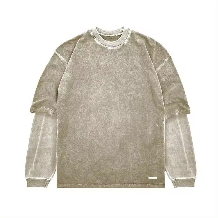 Chemise Slim Fit Acid Wash pour homme sérigraphiée poids lourd 100% coton sur la taille Boxy Double couche T-Shirt à manches longues