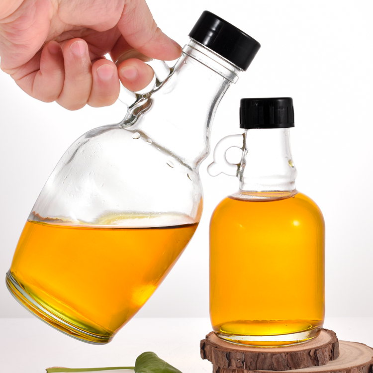 Sérigraphie 250ml 500ml Bouteilles de sirop d'érable Petite bouteille californienne pour le whisky de stockage de vin rouge avec poignée en verre