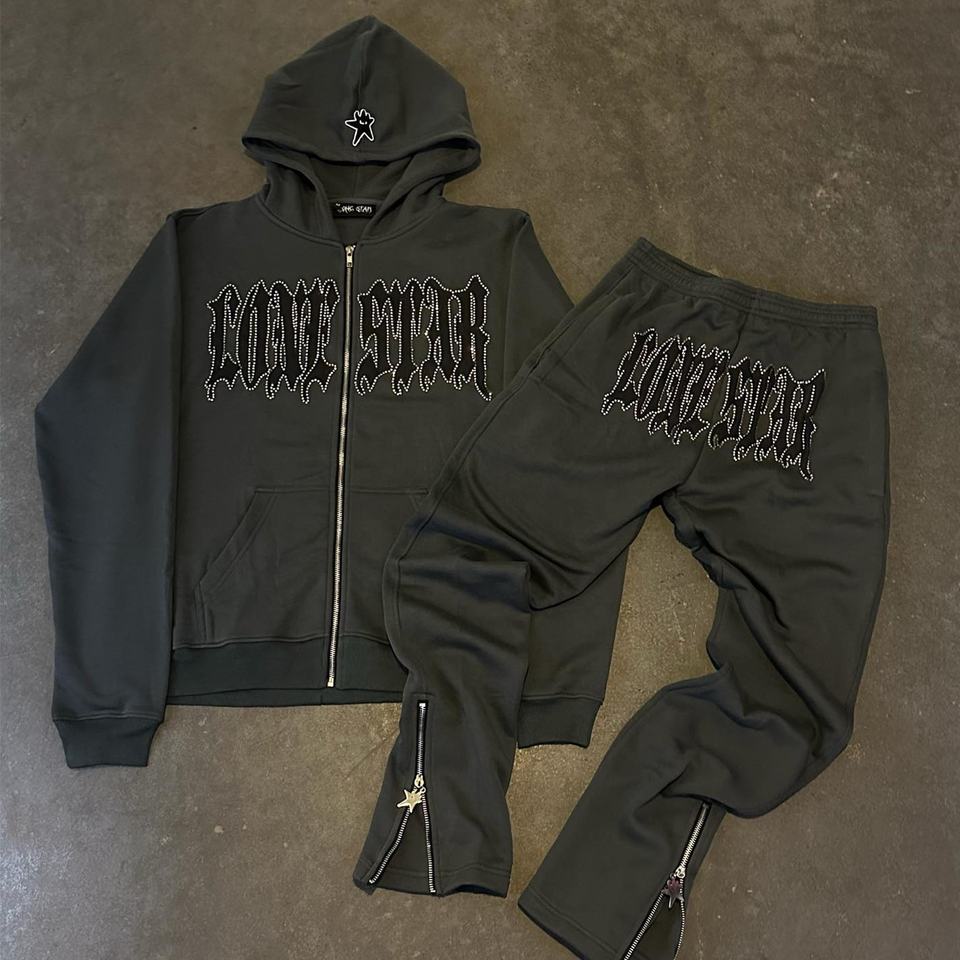 Ensemble Survêtement à Capuche et Pantalon de Survêtement avec Broderie en Coton Éponge Française Épaisse, Imprimé Sérigraphié Personnalisé pour Hommes