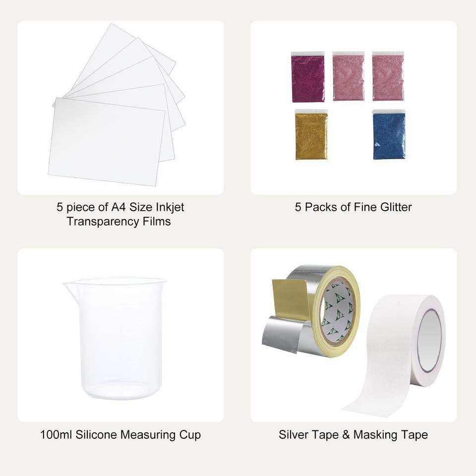 Kit de sérigraphie avec 3 cadres en aluminium, 5 raclettes à paillettes, film transparent et 5 mailles d'impression