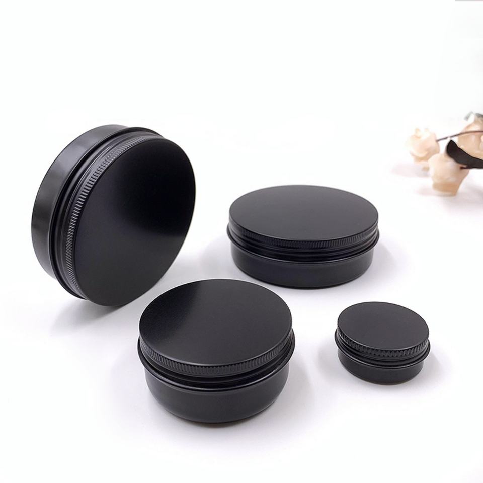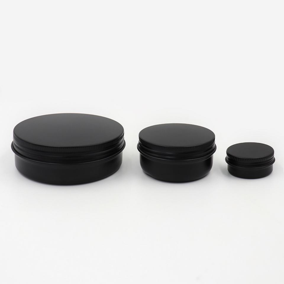 Pot cosmétique rond en aluminium noir mat avec couvercle à vis, vente en gros, 5ml-250ml, pour soins de la peau
