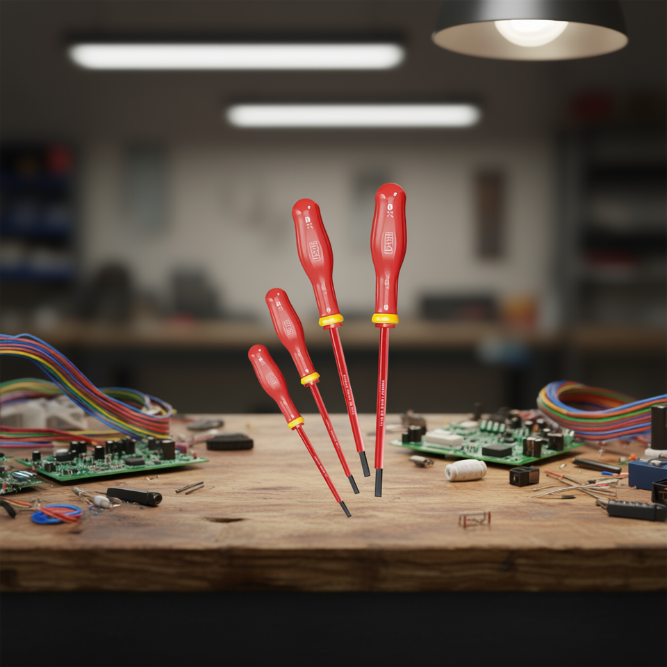 Jeu de tournevis 4 pièces, manche isolé rouge, pointe de précision pour réparation électrique